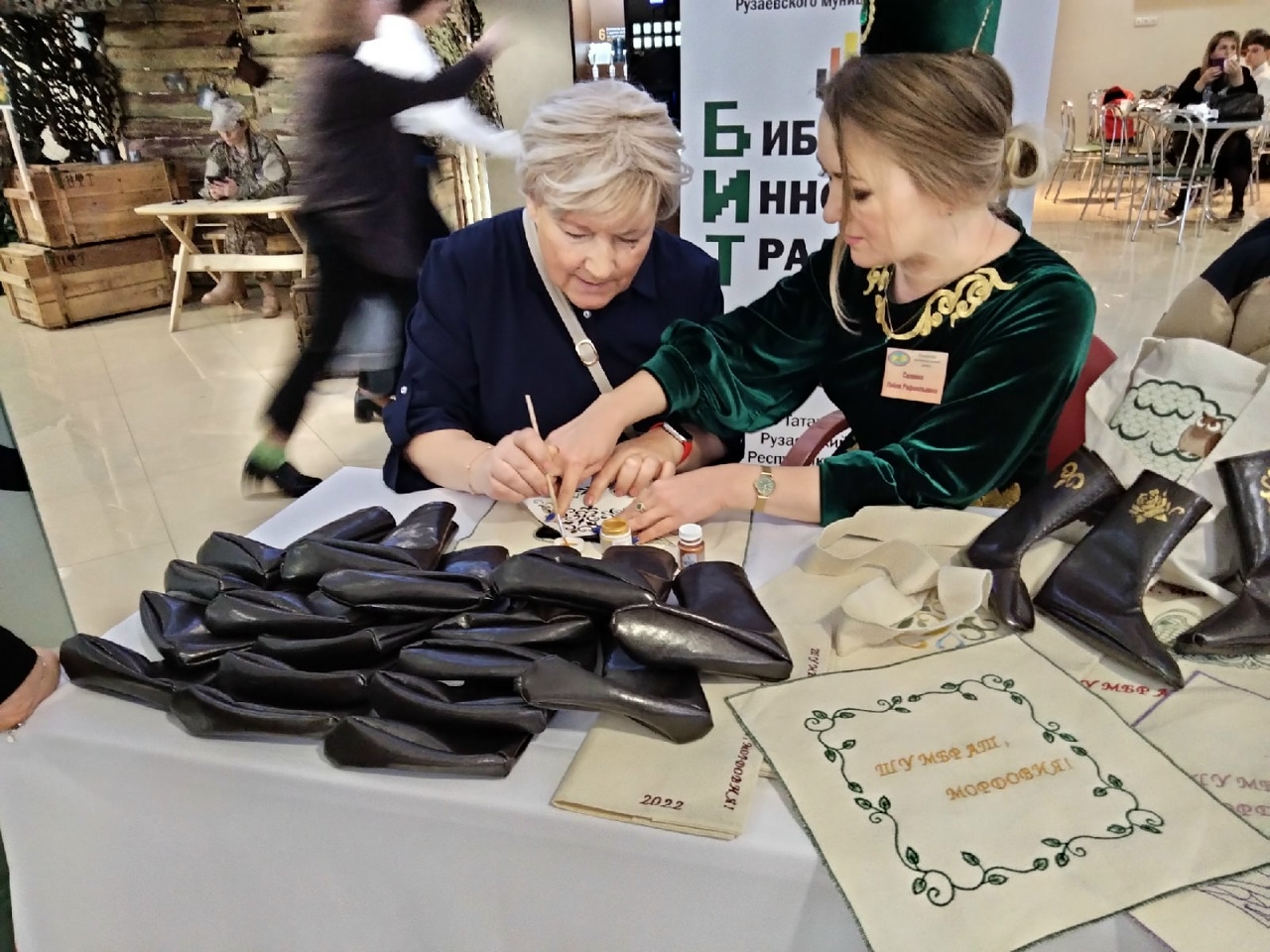 -«Читек. Татарский сапожок». Участники студии шьют заготовки миниатюрных татарских сапожек из эко кожи. Полученные заготовки, используют для проведения мастер-класса, во время которого они наносят на них татарский орнамент акриловыми красками. В процессе работы участников знакомят с национальным орнаментом, техникой нанесения и разнообразием национальной обуви.